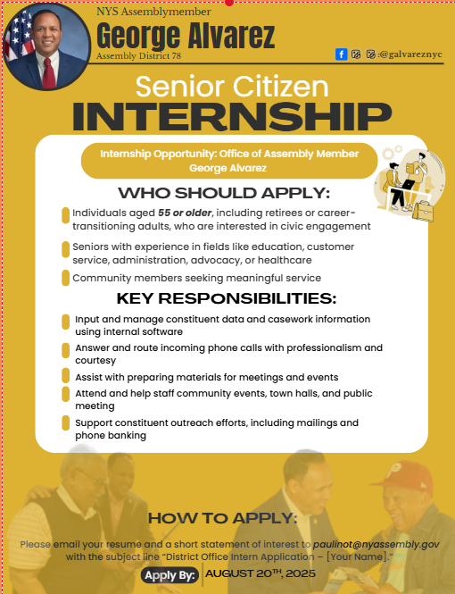 Join Community Events Look Out For The Newsletter for More Events! Join our mission in the Assembly District #78 and get involved today! Questions or want to share a community event? Please call our office at 718-933-2204 Participate in Our Community Events today! | Internship Interest Form Contact Form for Community EventsFirst Name/ NombreLast Name/ ApellidoEmailPhone/Mobile/Teléfono/MóvilYour Message/ Su MensajeSubmit Form